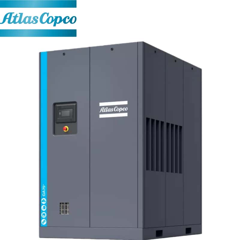 Atlas Copco GA75+ е първокласен стационарен електрически винтов въздушен компресор, включващ суперефективен мотор IE4, интегрирана обработка на въздуха и дълъг сервизен интервал от 8000 часа. Този Atlas Copco GA75+ балансира икономията на енергия и надеждността, подходящ за тежки индустриални приложения.