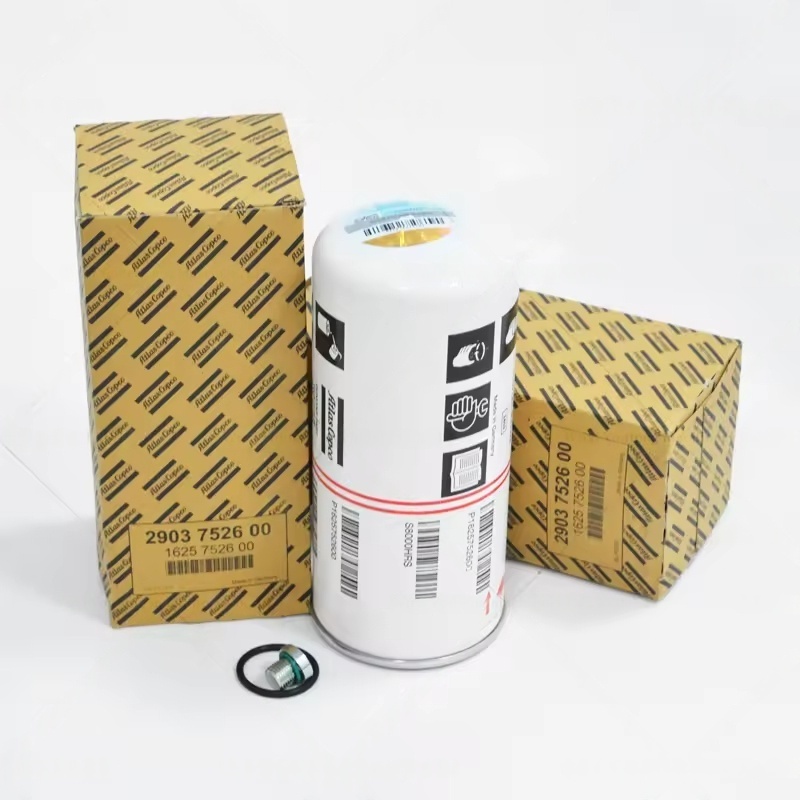 Масленият филтър на Atlas Copco: Използва се за филтриране на примеси в компресорното масло, като метални частици, маслени примеси и утайка от масло, осигуряваща перфектна защита за лагери и ротори. Оригиналният маслен филтър на компресорите Atlas Copco приема високоефективна филтърна хартия, включваща силна характеристика на филтриране, устойчивост на високи и ниски температури и устойчивост на синтетично масло. Неговият висок капацитет за задържане на мръсотия може да удължи интервалите за поддръжка, а еднообразните плисета за филтърна хартия осигуряват голяма зона за филтриране, предлагайки силна механична устойчивост на колебанията на под налягане.